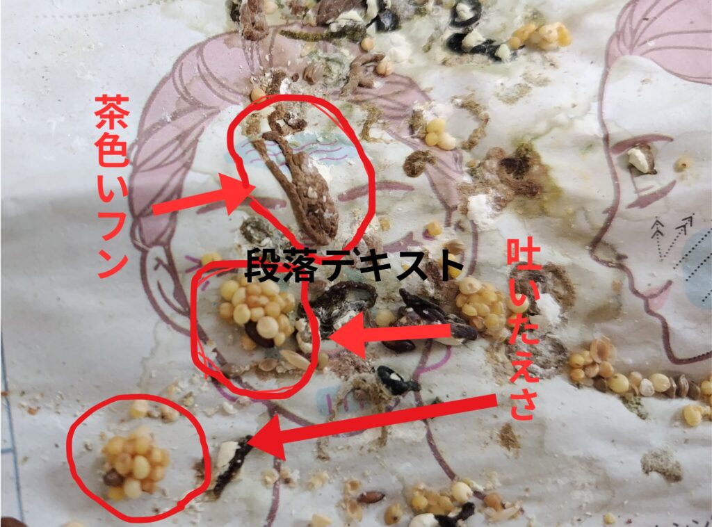 落ちているうんちは少し増えましたが、未消化のエサが混じっているものもあり、いつもよりはまだまだ少ないです。