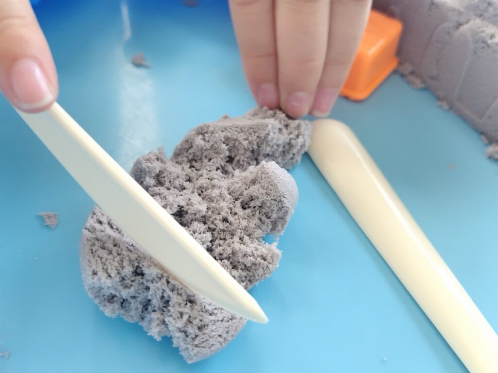 実際の砂と違ってしっとりまとまりやすいので散らかりません。
