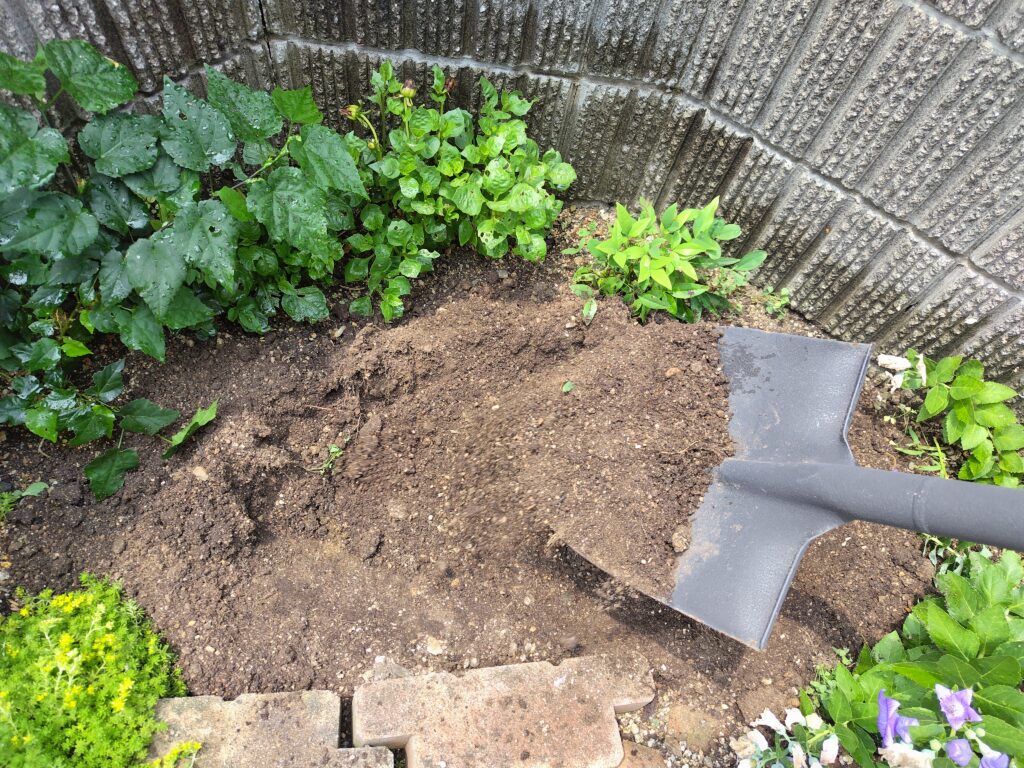 植え付け後にだしパック肥料をまいています。