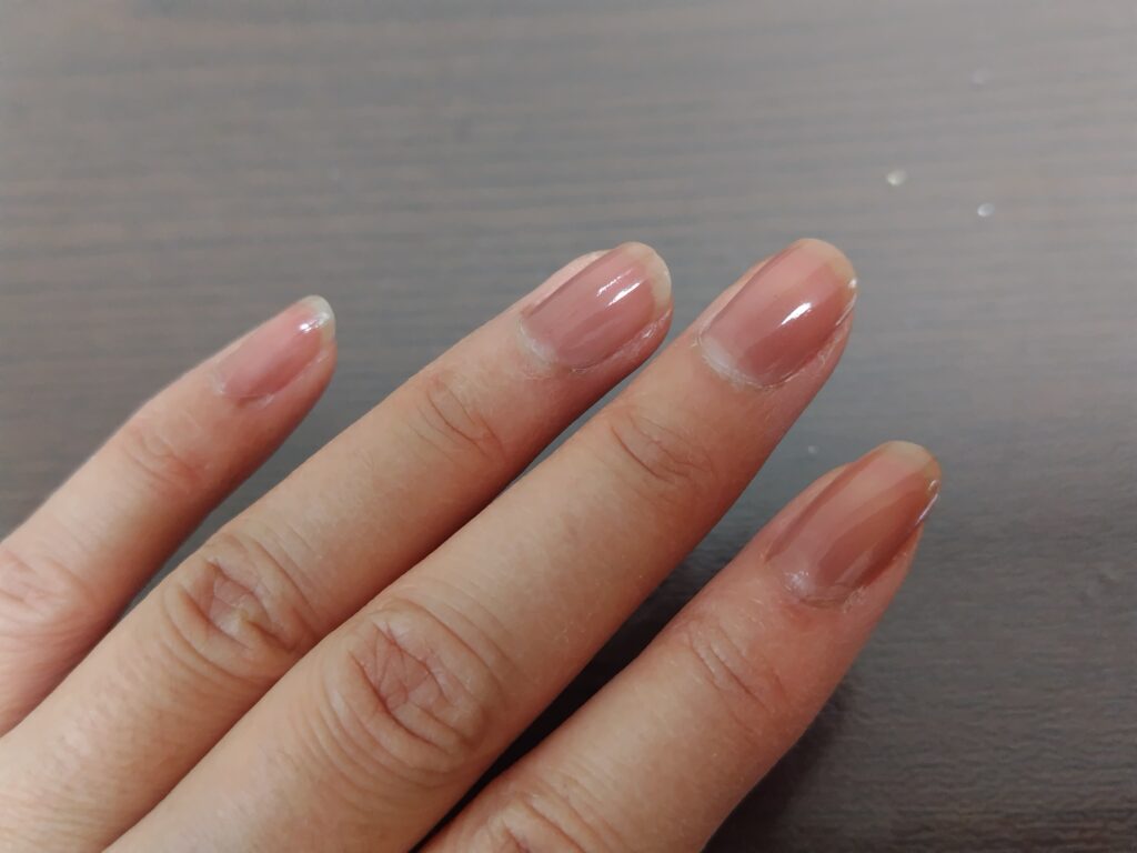一度塗りだとまだ爪の白い部分が透けて見えるレベルでした。