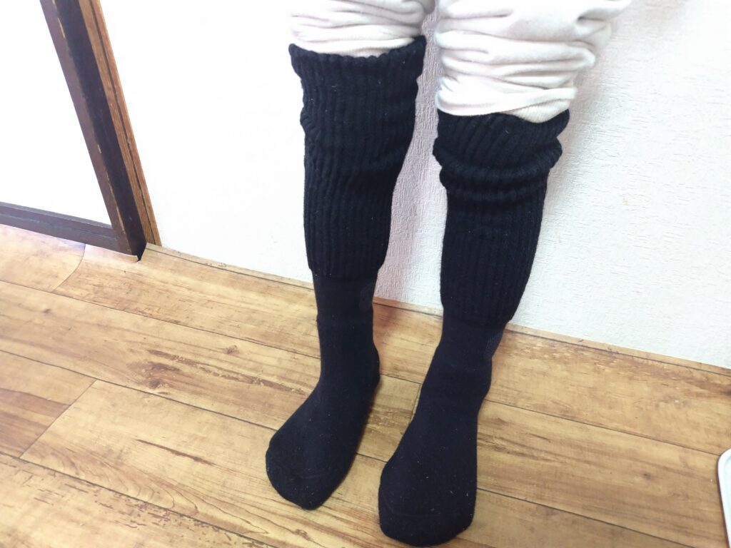 口コミにもあったとおり、靴下を上まで伸ばすとふくらはぎがとても暖かく感じます。