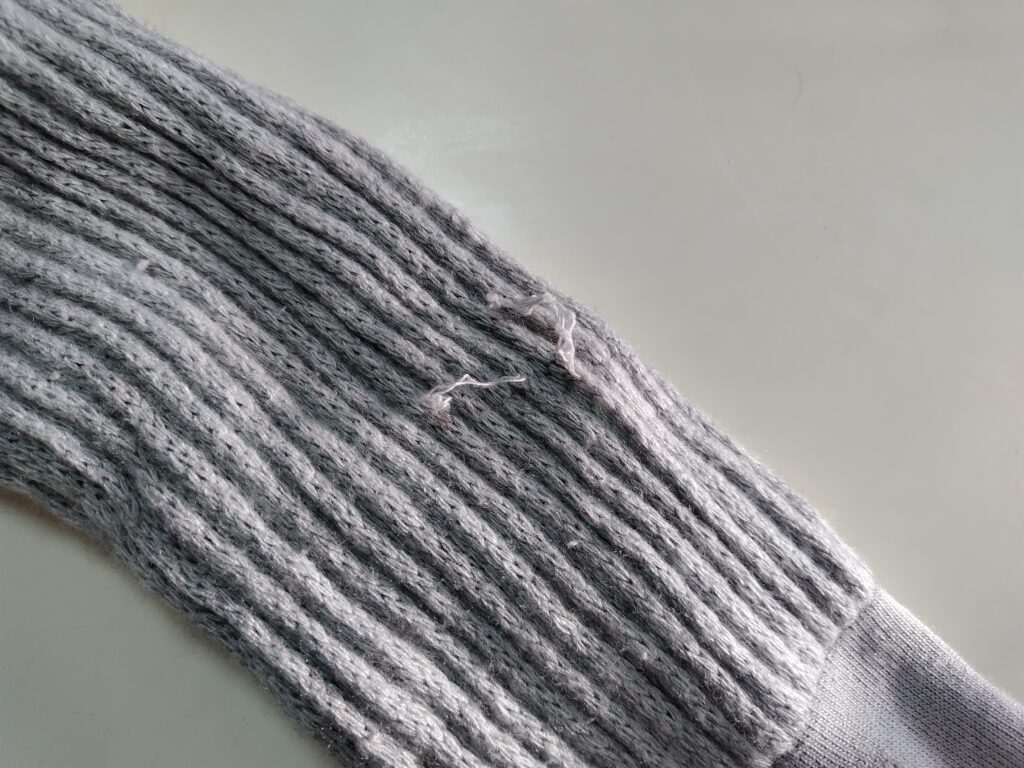 また、洗濯ネットに入れ忘れたときに1足は糸が飛び出してしまいました。